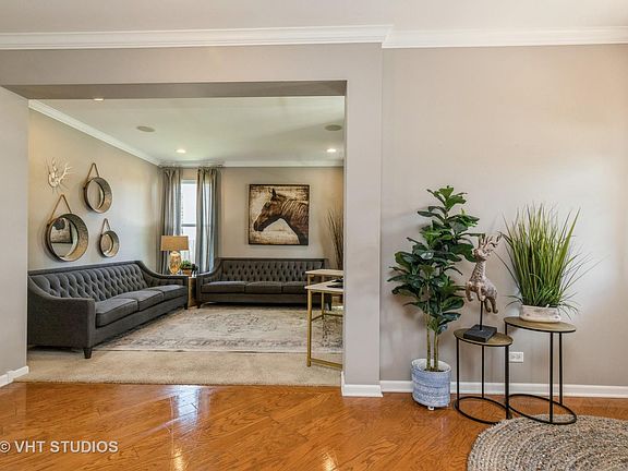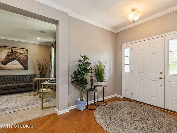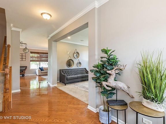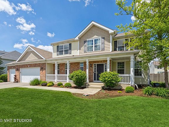 Come check out an original Pasquinelli built home in the heart of Tuscany Woods! This 2 story Beech was one of the model homes featuring glistening hardwood, oak flooring throughout the family room, eating area and kitchen. In the kitchen, you are sure to be impressed by the new (2021) White Quartz countertops, (2021) matching ceramic subway tile backsplash, (2021) undermount stainless steel sink, large island perfect for meal prep, and walk-in pantry. Relax in comfort in front of the family room gas fireplace with custom barn doors and built in shelving (2019). The kitchen eat-in area was beautifully surrounded with shiplap to truly bring out that "At Home" feeling. Upstairs are 4 generously sized bedrooms, with an owner's suite showcasing tray ceilings, and a peaceful sitting room. The attached owner's ensuite has a double vanity, full soaker tub, separate glass surround shower, linen and walk-in closet, plus a private water closet - a second full bath rounds off the upper level. Recessed lighting can be found through the main level and owner's suite and many updated light fixtures throughout (2019) The full, deep pour basement is wrapped and ready for your creative touch and rough-in plumbing is set. Attached 3 car garage - insulated, drywalled, and heated with attic space providing ample storage. Mature trees keep you cool on those summer days in the backyard. Conveniently located just down the road from the recently finished park with 3 baseball fields, dog park, walking trails, and 4 ponds throughout the neighborhood. Full interchange i90 nearby, minutes away from Huntley Shopping corridor.