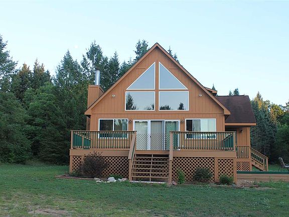 Looking for peacefulness and serenity? Here is a nice 3 bed 2 bath Chalet style home sitting on 10 wooded acres. House sits approximately 600ft off the road, master bedroom suite, main floor laundry, large deck to relax and take in your surroundings, wood fireplace, detached 2 car garage plumbed for bathroom and mancave, additional 20x24 polebarn. Wildlife a plenty, just 15 acres away from 1000's of acres of State/Federal Land, miles and miles of trails to ride your ORV or horseback riding. This home is currently used as a year round residence, but would make a great cabin for someone as well. This is a must see!
