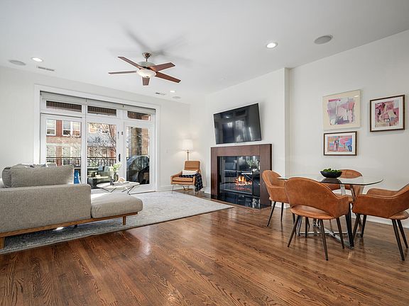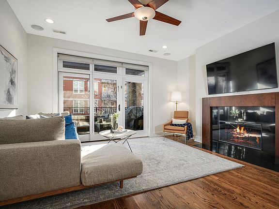 Located within an intimate seven-residence elevator building on a quiet, tree-lined one-way street, this sun-filled three-bedroom, two-bath residence offers a sophisticated and livable expression of West Loop living, complete with heated attached garage parking. Situated on the second floor, the home balances generous scale, thoughtful design, and everyday functionality across a well-proportioned layout. Wide-plank oak hardwood floors run throughout, leading to an oversized chef's kitchen that anchors the home and serves as a natural gathering space. Appointed with granite countertops, an impressive eight-foot granite island, stainless steel appliances, and abundant custom wood cabinetry, the kitchen flows seamlessly into the expansive living and dining area-ideal for both daily living and effortless entertaining. A gas fireplace provides warmth and architectural focus, while large floor to ceiling sliding doors invites abundant natural light and open to a private, covered deck with integrated lighting and sound overlooking the tree-lined street, creating a welcoming extension of the living space. The expansive primary suite is a true retreat, offering a custom professionally organized walk-in closet and additional space perfectly suited for a home office, sitting area or reading nook. The spa-inspired en-suite bath features a double vanity, soaking tub, and separate walk-in shower with custom glass enclosure. Two generously sized secondary bedrooms provide exceptional flexibility for guests, a nursery, or dedicated work-from-home or fitness spaces, complemented by a full second bath and in-unit laundry. Thoughtful updates further enhance the home, including upgraded LED lighting, a newer washer and dryer, an updated dishwasher, and a brand-new HVAC system, delivering modern comfort and long-term peace of mind. Located within the coveted Skinner West School District and just moments from Skinner Park, Mary Bartelme Park, Target, Whole Foods, Mariano's, and the West Loop's renowned dining and nightlife, this residence delivers vibrant city living with a true neighborhood feel-peacefully tucked away yet effortlessly connected to everything that defines the area.