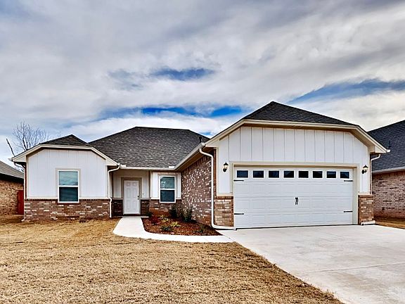 The Lincoln (3/2/2 - 1612sqft) 3D Virtual Tour New Construction 3 Bedroom 2 Bathroom 2 Car Garage Home in Oakdale School District. This stunning property is designed to offer the utmost comfort as you step onto the covered front porch, you'll immediately feel a sense of warmth and welcome. Inside, the open floor plan creates a seamless flow between the living, dining, and kitchen areas, perfect for entertaining guests or simply enjoying quality time with loved ones. The tile flooring throughout adds a touch of elegance a the kitchen boasts beautiful granite countertops and a convenient kitchen island, providing ample space for meal preparation and storage. The laundry room is thoughtfully located for added convenience. The large walk-in primary closet offers plenty of storage space, ensuring your belongings are neatly organized. The walk-in shower in the primary bathroom adds a touch of luxury to your daily routine. Step outside onto the covered back patio and fenced-in back yard that provides privacy and security, allowing you to relax and unwind in your own personal oasis. Say goodbye to the hassle of lawn care, as it is included in your rental package. Additionally, the property features an irrigation system, ensuring your lawn stays lush and green year-round. For added enjoyment, a neighborhood playground is available for residents to use. Don't miss out on this incredible opportunity to call this beautiful house your home. Basketball Court Coming Soon! Pets Case by Case. Tenants responsible for refrigerator, washer and dryer. Range, dishwasher and microwave are included. Driving Directions: From I-35, exit on NE 122nd & go west towards N Coltrane. Turn north onto Coltrane. Oakdale Ridge will be on the east side of Coltrane. 3D TOUR / PHOTOS / FLOOR PLAN ARE OF A SIMILAR PROPERTY. STAGED INTERIOR PHOTOS NOT OF ACTUAL ADDRESS.