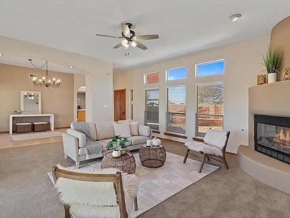 Welcome to this stunning North Albuquerque Acres gem, nestled on a spacious 0.89-acre lot with breathtaking views of the Sandia Mountains. This 4-bedroom, 2-bath home offers a serene escape in one of Albuquerque's most sought-after neighborhoods. Step through the charming front courtyard with a tranquil fountain and into a warm, inviting interior full of natural light. The backyard is perfect for relaxing or entertaining, with plenty of room to enjoy the outdoors. Located in the highly desirable Double Eagle Elementary and La Cueva High School district, this home combines beauty, space, and top-tier education in one exceptional package