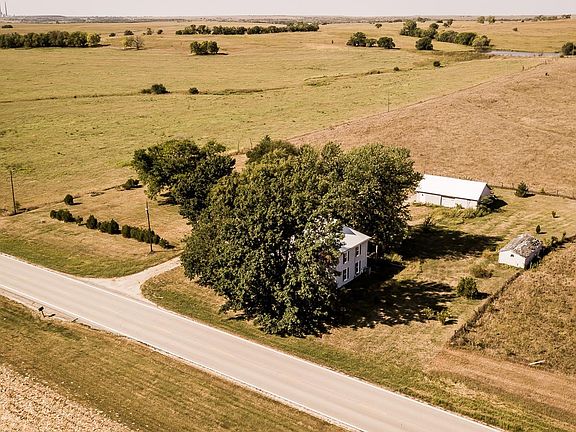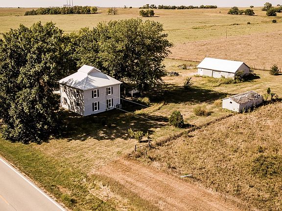 This 3 bed, 1 bath house is located just north of Emmett, KS. Originally built in 1880, it is rich with history and character. It has had many recent updates including a new roof, windows and exterior doors. The main level has the living room, dining room, kitchen, large mud/laundry room and full bathroom. The upper level includes three bedrooms with a bonus non-conforming room. The house has central air conditioning and heating with a dual zoned heat pump system. There are two outbuildings with concrete floors. Utilities include electric, rural water, propane and a septic system.