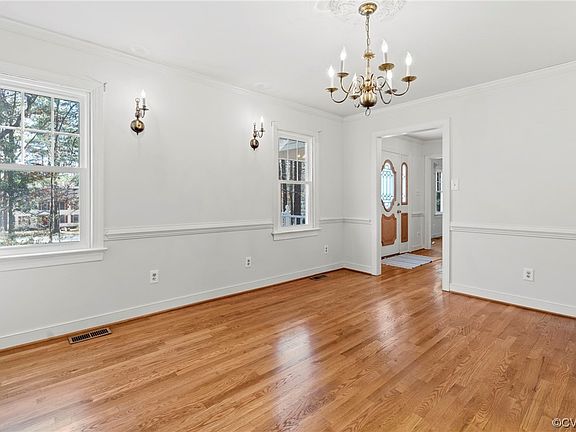 - Description: hardwood, chandelier, chair rail, crown molding