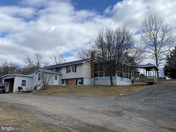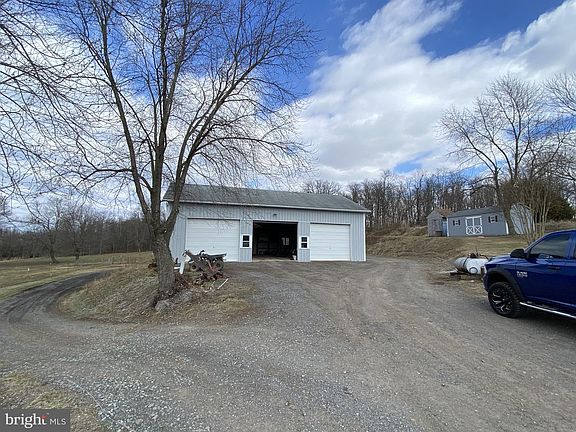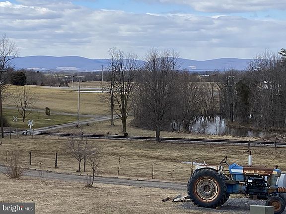 3 bedroom house on an 8+ acre farmette with a detached 3 bay metal building with car lift and electricity, a small barn with water and electricity, and a chicken coop also with electric ran to it. There is a beautiful garden area atop the hill overlooking the back half of the property, and a wooded trail area that is part of the property as well which is beautiful. The screened in side porch overlooks the neighbors pond with views of the front pasture, farm fields and mountains in the back drop. The views are amazing in every direction and in every season.