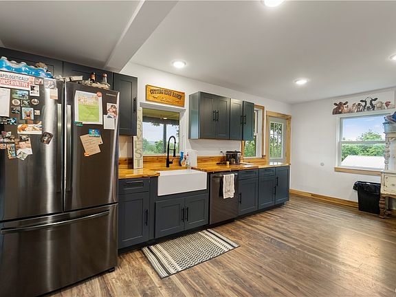 Welcome to this beautifully remodeled 4 Bed 2 Full Bath Farmhouse. Too many updates to list here List is in the disclosures & images. This home features gorgeous butcher block counter tops in an open concept floor plan leading into the dining/family/living room combo. Serene setting on over 9 acres is a hobby farmers dream with a 5 stall barn, established chicken coop with Frost free Hydrates through out the property! Large detached garage with preinstalled radiate heat concrete floor waiting to be hooked up. *Square footage is updated to the floor plans on virtual walk through done by a professional *In the event of multiple offers, seller reserves the right to set a deadline for any and all offers. *VIRTUAL TOUR AVAILABLE*