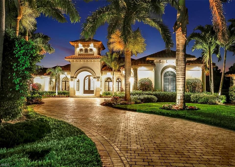 This beautiful custom home in Renaissance was uniquely designed to enhance the completely private view and to enlarge the outside living areas. Perfectly positioned on a premium "cul-de-sac" lot with an elongated drive and an impressive arched entrance, this 3 bedroom (+den!) 4 bath home has trendy diagonal tile flooring and oversized windows to greet you as the front entrance pours into the bright airy sitting room - perfect for gathering for a view of the golf course, spa and pool. The well planned Gourmet Kitchen is complete with top of the line luxury appliances including Miele and Subzero, double convention ovens, gas range, generous cabinet space and beautiful granite counter tops. Each Ensuite bedroom has plentiful space. The Master suite is particularly special with sliders and oversized windows providing an incredible view. The abundance of details and upgrades - custom molding, coffered ceilings, all impact resistant windows and sliders, 20 KW generator, custom wet bar, outdoor kitchen and extra storage, to name a few, are something to behold. It's easy to live the Southwest Florida lifestyle with oversized glass sliders creating the ultimate in indoor/outdoor living.