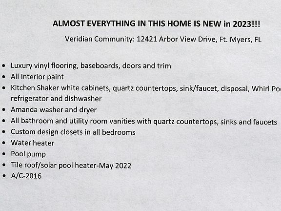 Significant Price Improvement! Welcome to Veridian- Located in the historic & much sought after Iona- McGregor corridor - Experience the Ultimate location & the perfect home- recently remodeled. Boasting 4 bedrooms & den, 3 full bathrooms & oversized 2 car garage with ample storage. Upon entering you will immediately fall in love with the stunning view of the pool, spa & lake. You will also appreciate the open concept floor plan. Fully appointed Kitchen- Brand New Shaker Style Cabinets,Quartz countertops with center island, breakfast bar, pantry & dining area overlooking the pool & lanai. Luxury Vinyl flooring thru out Family room, den & all bedrooms. Good size master suite with Spacious En-suite. Newly remodeled custom walk in closet. Split floorplan- Bedrooms 2 & 3 & full bathroom located away from the master bedroom. Another real treat is the 4th bedroom- located at the back of the house - very large with attached bathroom & private access to the lanai. Veridian is conveniently located near fine dining, shopping, and minutes to the beaches. Saltwater solar heated pool & spa. New Roof May 2022. Come find your piece of Paradise!