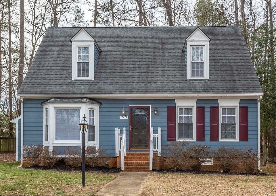 Welcome to 12421 Brimfield Lane – Centrally Located in the Abbots Mill Community! This Cape Cod style home features 1,564 square feet, 3 bedrooms and 2 full baths. Upon entry you will find a large flex room that could be used as a Formal Living or Dining room, a spacious family room with vaulted ceiling, ceiling fan with light and a brick wood burning fireplace. The kitchen is equipped with all the appliances you need and a breakfast nook with bay window. The first floor also gives you the primary bedroom with double closets and an adjacent full bath with a single vanity and tub/shower combination. Upstairs you will find the second and third bedrooms both with large closets and ceiling fans plus a full bath. Other amenities include vinyl windows, rear deck, paved drive, dimensional roof and electric heat pump/central air sitting on a cul-de sac lot. The Roof is 8 years old & HVAC is 5 years old. SELLER IS OFFERING A $2,500 FLOORING ALLOWANCE!!
