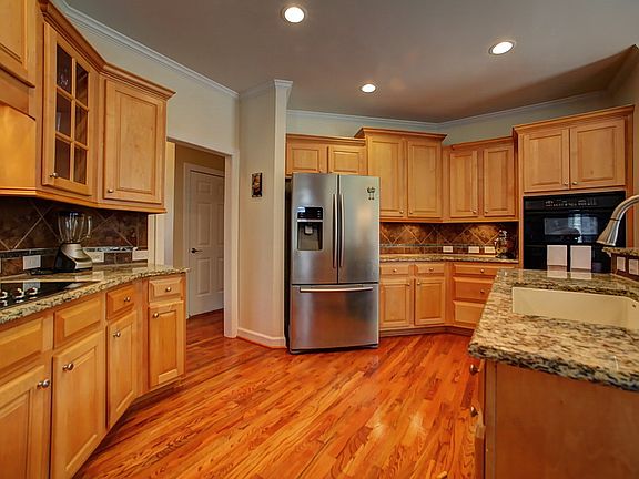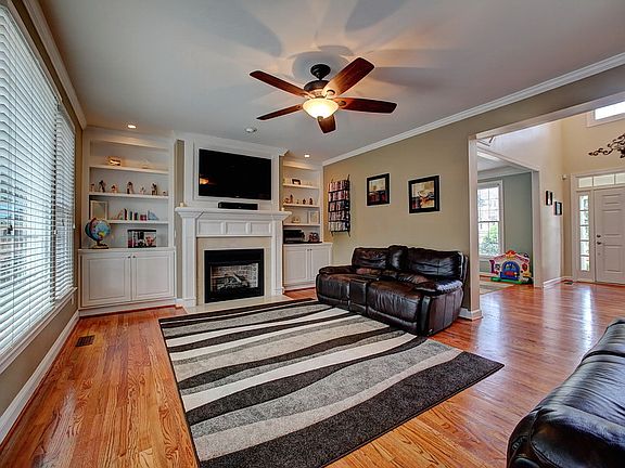 This Raleigh two-story cul-de-sac home offers hardwood flooring, a fireplace, granite kitchen countertops, a den, and a two-car garage.