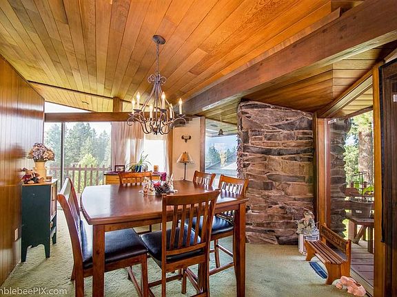 Amazing 4000+ sq ft mid century architect's rancher on over sized corner lot. This 5 bedroom, 4 bath home boasts soaring natural wood cathedral ceilings and a wall of windows to showcase the beautiful views. Other features include; large welcoming foyer, w/floating walls, family room with fullsize retro wet bar and pool room, great for entertaining! Wrap around deck, 2 large stone fireplaces, main floor laundry and office, separate pantry with freezer, large circular driveway, room for boat or RV. Detached 1340 ft 3 car garage and shop.