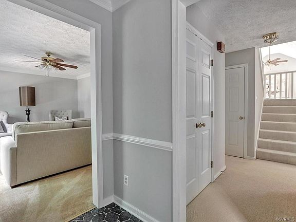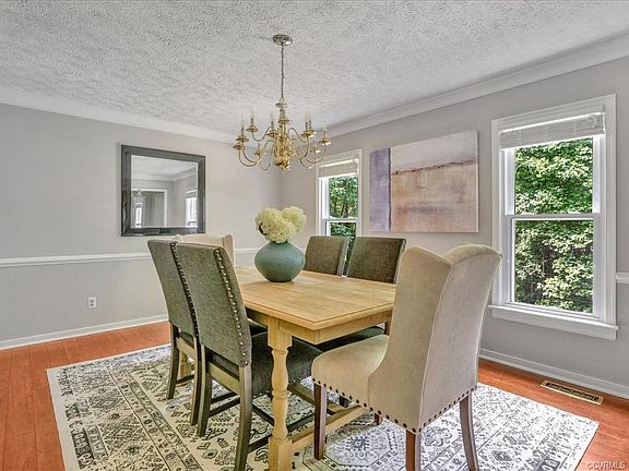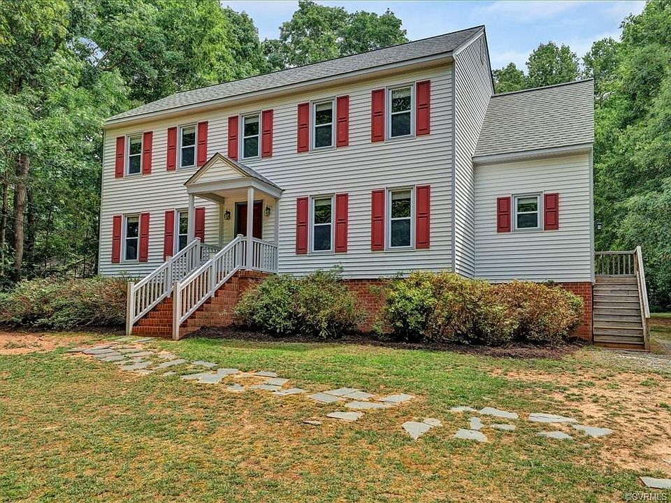 SPACIOUS HOME WITH LARGE, PRIVATE BACKYARD IN CHESTERFIELD COUNTY! Head up the Private Driveway to Find a Home Full of Character, Lots of Space, & Privacy! Gorgeous Formal Dining Room w/hardwood floors & Living Room Greet You & Lead into Spacious Kitchen Featuring SS Appliances, Tile Backsplash, Wooden Cabinetry & Eat-in Area w/ Bay Window! Off Kitchen Sits Cozy Family Room Featuring WTW Carpet, Vaulted Ceiling, Chair Rail w/Wainscoting, Ceiling Fan & Gas Fireplace w/Brick Surround & Hearth & Wooden Mantel! 1st FLOOR Full Hall Bath, 1st FLOOR Bedroom, & Laundry/Mudroom Make Up Spacious First Floor! Head up One of the 2 Staircases to Find Large Master Bedroom w/WTW Carpet, TWO Ceiling Fans, Sitting Area, HIS & HERS Walk-in-Closets & Ensuite Bath w/Tile Floor & Shower w/Glass Sliding Door! Off Master Sits Bonus Space with Own Private Staircase - Could be Used as an Office or Reading Room! 2 Additional Bedrooms & Full Hall Bath w/Tile on Second Floor. Exterior Offers Large Deck (NEW Painted & Powerwash!), Private Backyard & Detached Storage Shed! FRESH PAINT THROUGHOUT! HVAC 4yrs NEW, ROOF 3 years NEW, Water heater 1 year NEW and Newer vinyl replacement windows.