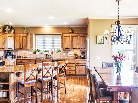 Liberty schools with acreage & incredible views! Pride of ownership apparent. Open kitchen & hearth with hardwoods, vaulted ceilings, granite island, and walk-thru butler's pantry. Built-ins, wide dual staircase, vaulted ceilings throughout, large main level office. Pre-wired for attic fan. Tons of natural light. Oversized master suite, bath with double vanity and dual shower heads in shower room, plus an extra large closet. Walkout basement is loaded with windows, has high ceilings and is drywall ready. Basement has electrical installed and is stubbed for bath/bar. Additional 4th side car garage/workshop great for mowers, motorcycles, etc. or John Deere room. Professionally landscaped yard backs to green space. Neighborhood pond is stocked for fishing!