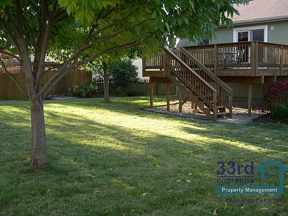 Welcome to this newer, modern, immaculately kept, suburban front-to-back split home in northwest Olathe, Kansas, with 1400-plus square feet (plus a sub-basement, not pictured), huge kitchen, 3 bedrooms and 2.5 bathrooms. The large main living room features a vaulted ceiling, upgraded Hunter ceiling fan, wooden blinds, floor-level oak storage cabinet, modern chandelier and gas fireplace (decorative only). The kitchen features newer appliances and an abundance of hard-wood cabinets, breakfast island, ample counter-space, and adjacent pantry. The spacious master bedroom is painted a rich Clinton brown with white accent and features wooden blinds, an updated ceiling fan (with remote), a vaulted ceiling and 2 walk-in closets. The master bathroom has a double vanity and updated plumbing fixtures and was recently painted. There are 2 additional good-sized bedrooms on this level. The very spacious entertainment room features a half-bathroom, track lighting, accent ledges for storage, cable and phone outlets and is wired for surround sound. The garage, classified as oversized due its 27-feet-by-22-feet dimensions has a painted floor, dual garage doors, front-entry doorway, and electronic keypads. An additional sub-basement has ample storage and utilities, including a water softener. The 12,461-square-foot yard features a long driveway, wood-fenced backyard (great for pets) and a large wooden back deck. The home is close to schools, shopping and is an easy commute to downtown or suburban business centers. Lease Term: 12 + Months Pet Policy; 2 under 30 lbs. $500 per pet deposit Utilities Included in Rent: NONE Utilities Paid By Tenant: ALL Utilities