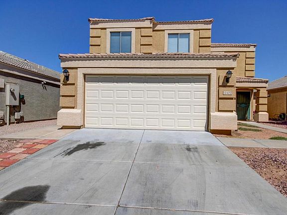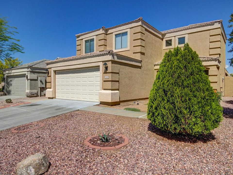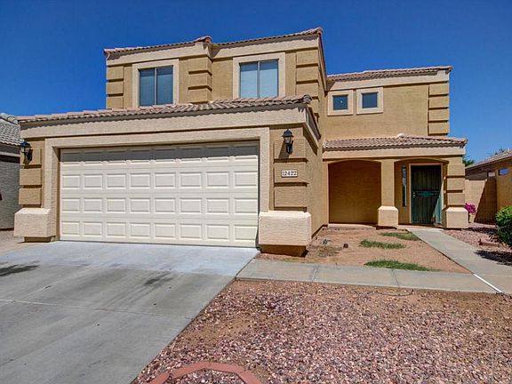 Your new home awaits in this beautiful two story El Mirage home! Move in ready with an open concept floor plan that features gorgeous tile flooring, an inviting color palette and large picture windows! Large kitchen offers white appliances, ample counter space, an abundance of cabinets, walk in pantry and a breakfast bar! Staircase leads to a huge loft and spacious bedrooms with plush carpet and picture windows. Master bedroom includes a walk in closet and an adjoining bath! Nice backyard has an extended covered patio that overlooks the green grass and meticulous desert landscape, which includes two very nice orange trees! This home can be yours in an instant! See it today!!