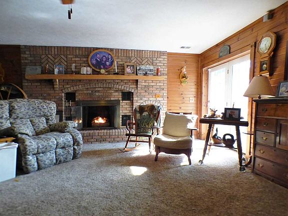 SOMETHING FOR EVERYONE in this 5-6 BR home! Enjoy the outdoors w/your own lake/pond with dock on 2.59 Ac. This efficient, berm-style home overlooks the lake and inviting patio area w/built-in firepit and outdoor grilling center (gas grill included). Many areas are landscaped to enhance the beauty attracting birds and wildlife. A rock/flower garden area, a vegetable garden and scenic views await. Inside you will find a spacious kitchen remodeled in Jan. 2021 including new stainless appliances. Hickory cabinets w/pantry and a large kitchen island beckons all to gather 'round. The dining room opens into the kitchen making one huge space for entertaining and large gatherings. One wing has a sizable bedroom with two walk-in closets and it's own entrance, a bathroom, laundry room and another room which can be used as a bedroom, office, storage or hobbies. Off the main part of the home are three more bedrooms and bath with jetted soaking tub. The newer addition has a good-sized bedroom with two closets. Across the hall is an enormous great room with it's own entrance/exit. The gas fireplace is a focal point of the room and can be converted back to wood burning. This home has multiple heating sources including an electric heat pump and an outdoor wood-burning furnace which also heats hot water. There is an amazing amount of storage including the newer 30x50 post frame building and it's upstairs. This building is finished and insulated with its own heater. The attached two-car garage is also insulated as well.