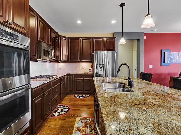 Gorgeous open floor plan is perfect in every way. Popular Flatiron model w/separated bedrooms for owner & guest privacy. Upgraded oak hardwoods gleam upon entering & continue in all common areas. Bedrooms sport plush beige carpet & baths have tile floors. Open kitchen, dining & great room adds to the appeal of this model. Cherry cabinets, awesome granite, tumbled stone backsplash, all SS appliances w/gas cooktop, & island complete the kitchen. Master has walk in closet & walk in shower & mtn view. Entrance from gar is truly unique w/cabinets, laundry & open area to leave work behind. Gar is OS w/extension on 1 side. Very large covered patio w/unblockable mtn view & roll down shades for sunny afternoon enjoyment. Bsmt is open for buyer's finishing choices w/5 egress windows, 2 sump pumps to ensure dryness, RI for bath & 2nd electric panel. Also prewired for surround. Mtce free yard in this highly desirable over 55 community. Lodge w/work out room, pool & for community gatherings.