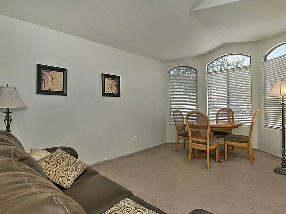 BEAUTIFUL 1,716 SQ FT SINGLE LEVEL HOME SOLAR POWERED WITH HEATED POOL AND PUTTING GREEN! GREAT LOCATION NEAR COMMUNITY GREEENBELT/TOT LOT! NEW APPLIANCES, REFRIGERATOR, MICROWAVE, DISHWASHER WASHER, AND DRYER INCLUDED! Spacious 4 Bedroom. 4th Bedroom can be converted into a Den if desired. Interior features include vaulted ceilings, Living Room, Family Room, tile flooring, upgraded Vinyl Tile in Bedrooms maple cabinets, Venetian blinds, Master Bath with double sinks and separate exit to patio/pool, spacious Master Bedroom with large walk-in closet, security system, ceiling fans, and more! The back yard oasis boasts a refreshing fenced pool with New Filter and PUMP (2021) Kool deck, artificial turf, putting green, covered patio with awning, shed, deck for BBQ, & palms. Great location near elementary & middle schools.