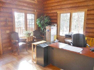 Large, sunny & bright office for lease in beautiful log office building. Right off Highway 285 frontage road. Large open floor plan with 3 private offices. Room for many work stations. Private bath, kitchenette. $1400/mo. No CAMS. Plenty of parking. Call Claire at 720.272.1125