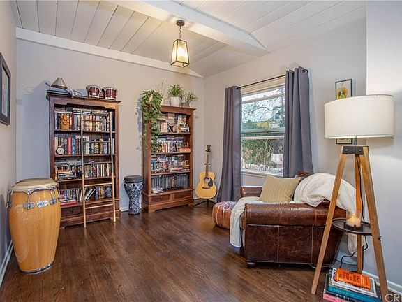 This stunning single-story Valley Village home is the epitome of California indoor/outdoor living. The 2bed, 1.5bath home offers refinished hardwood floors throughout the living room, tasteful wood beamed, tounge and groove ceiling, two fireplaces, a dining and a sitting room. The formal dining with fireplace could be converted into a third bedroom. Value add and convert the garage into an ADU or Master Retreat. Eat in kitchen boasts stainless steele appliances as well as new sink fixtures. The backyard is a zen oasis. Hop in the pool and enjoy an outdoor shower when you are done! The lap pool and spa are powered by Solar, offering an energy efficient way to keep the pool at desirable temperature year round. The interior hot water is also fueled by this Solar source. The backyard offers a covered lounge area with outdoor TV, as well as a pergola- perfect for outdoor dining and entertaining. Owner recently painted interior of house, as well as all new sod. This home is sure to leave a lasting impression!