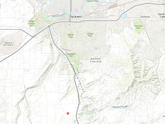 Pending sale, no longer available.....Ten flat acres directly adjoining "Slavin Conservation Area", about 8 miles south of Spokane. Abundant wildlife, miles of trails, quiet country living. Gravel road along North end of parcel, easy access to I-195, Beautiful building sites, great well on adjoining property to East at about 150 feet depth. Please leave message if no answer.