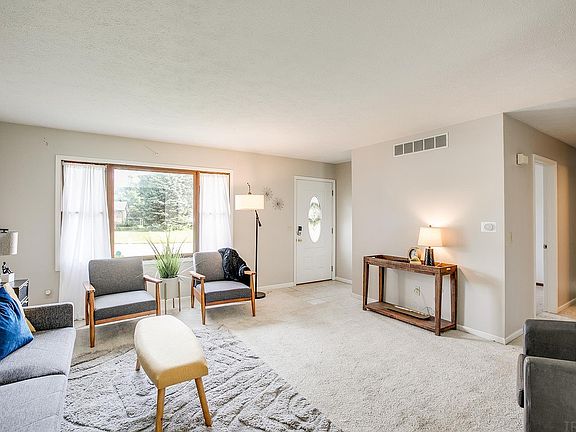 Lovely one story home in the heart beat of classic Granger Indiana. You'll love the the living room, bright airy and spacious! Never miss out on a conversation while food prepping. The eat in-kitchen with a newer refrigerator & dishwasher, has a great space for a table and is open to the step down family room with fire place and living room! 3 very nice sized bedrooms await you! The master bedroom with ensuite is perfect for your own private retreat. On the lower level you'll find a bonus living room with bar, laundry room, newer sump pump, and a possible 4th bedroom. Nestled on a corner lot, newer storage shed & garden boxes, privacy fence, and ready for you to move in.
