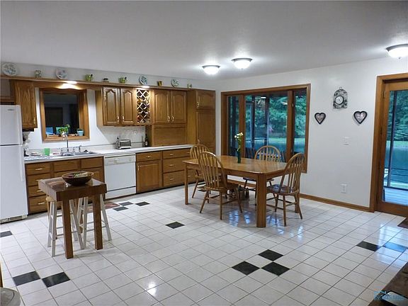 Enjoy peace and quiet!Beautiful country setting nestled in 14 acres of woodlands.4 bdrm home w/2 baths,lots of storage room,loft area for studies or gaming,super large family fun kitchen w/tile floor,screened porch for summer meals,spacious living room w/cathedral ceilings,den area,full basement w/rec and exercise rooms,detached 28x36 shop,utility shed and a stocked pond for fishing pleasure!
