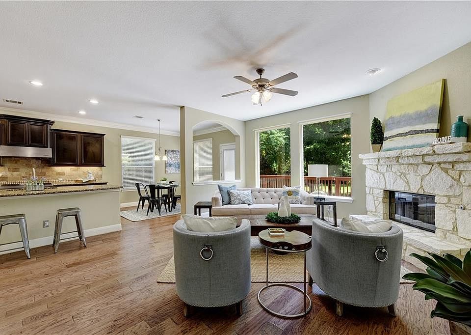 Come see this lovely five bedroom, three and half bath home located in small pocket neighborhood in the heart of all things fresh & happening in North Austin. Energy efficient with triple pane windows & electric bill averages less then $50 per month due to solar panels installed in 2013. Hand-scraped wood floors usher you past office, half bath & dining to open concept living & kitchen with commercial grade gas stove, eat-in breakfast bar & walk-in pantry. Master suite shines w/floor-to-ceiling windows & crown. Huge game and media room with built in surround sound & 4 large bedrooms & 2 full baths complete the 2nd story. Live, work and play with all North Austin has to offer from shopping, parks, technology employers, and sought after Murchison Middle School / Anderson High School. Vibrant new area of Austin with Apple, 183 Business Center and The Domain just around the corner.