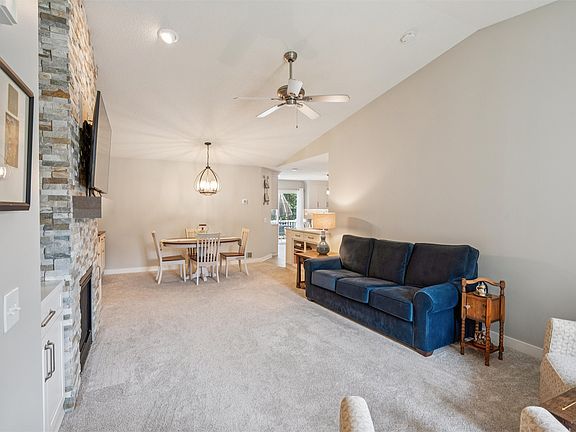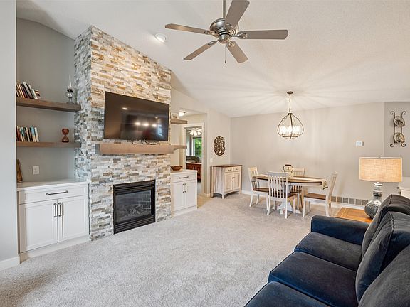 This stunning end-unit ranch townhome wows from the start with a completely reimagined kitchen featuring 42” ceiling-height cabinets, quartz island, farm sink with added window, SS appliances, backsplash, and under-cabinet lighting. The open layout flows to a living space highlighted by a floor-to-ceiling stacked stone fireplace, custom mantel, and built-in bookshelves. The main level offers 3 bedrooms, plus a 4th in the finished lower level with 1,090 sq ft of extra living space. The pantry is even plumbed for a washer/dryer for optional main floor laundry. Move-in ready, beautifully updated—this rare end unit is the one you’ve been waiting for!