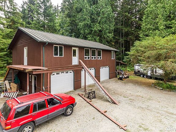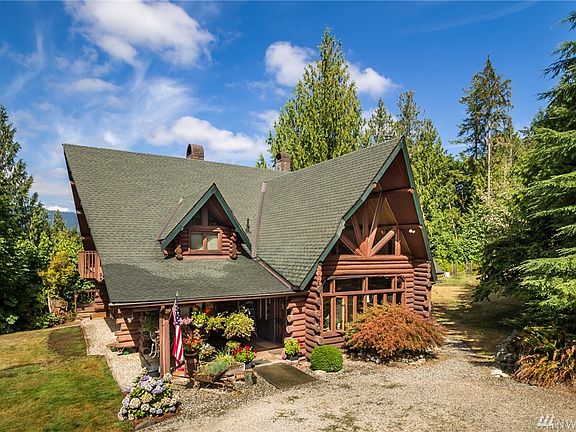 Beautiful log home by Meadow Mt. from logs harvested on ppty. 4+BR 3BA. 1BR on main. Over 3,000 sqft. 30' ceilings + master w/wood burn FP. Propane radiant heat on main. Lg kitchen w/bake center, island, quarts counters. Hardwood floors river rock FP. 30 x 50 3 bay gar w/mil or apt/shop roughed in above. Huge back deck + deck off master. w/power/water/septic for accessory dwelling. 6+ acres and mtn views! Private setting.