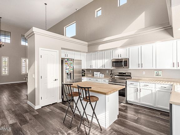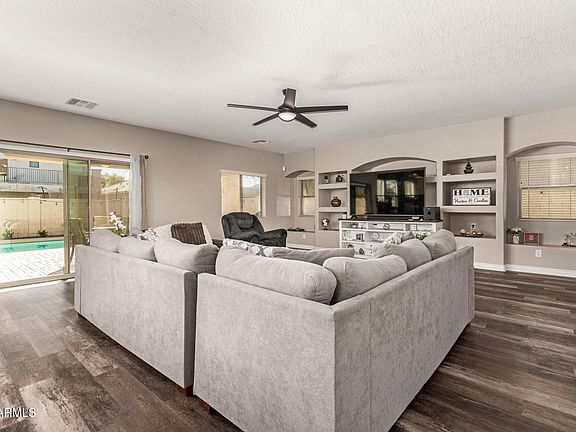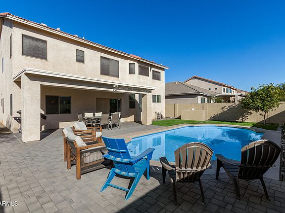 Remarkable two-story home with POOL in Diamond Ridge Place! Displaying a 3-car garage, front porch, & a low-care landscape. Home exudes elegance with plantation shutters, high ceilings, neutral paint, abundant natural light, and carpet & wood-look floors t/out. You'll love the large living & dining room! The kitchen has SS appliances, a pantry, ample white cabinetry, and a butcher block island. Its breakfast area overlooks the spacious family room w/media niche & sliding doors to the back. All bedrooms are upstairs, along w/cozy loft! The double-door main bedroom has an ensuite with dual sinks, separate tub/shower, & a walk-in closet. Outdoor living is equally impressive! Designed for year-round enjoyment with an extended paver-covered patio, artificial turf, & a sparkling pool. Just WOW!