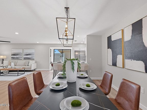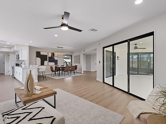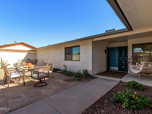 Completely remodeled with open floorplan featuring luxury upgrades throughout. You will enter this beautiful home through a large, private and gated courtyard, perfect for outdoor living and entertaining. There is even a concrete pad ready for your hot tub, tiki bar or outdoor kitchen. The inside has been beautifully upgraded and redesigned with all new cabinets, quartz countertops, upgraded appliances, designer lighting/fixtures and luxury vinyl plank flooring throughout. Walls of sliding doors lead to a huge screened Arizona Room overlooking the back yard. The easy care yard with low water use plants make this a great home for snow birds or year around living. Large indoor laundry room can be dual use for crafting room or home office. Low solar lease payments for low electric bills and low property taxes in this sought after area are an added bonus!