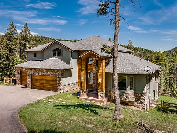 BIG Price Improvement on this Colorado dream home! Winding up the paved driveway through the meadow with the seasonal creek, through the ten wooded acres and greeted by wildlife, you are welcomed home to this gorgeous & updated mountain home. This is an ideal home for entertaining or multi-generational living. Featuring soaring ceilings, wall of windows, Hunter Douglas blinds, open floor plan, expansive and remodeled kitchen, big deck (recently repaired and re-done), hickory wood floors, separate living quarters in basement, multiple en-suite bedrooms and so much more! Expansive & remodeled kitchen features a kitchen island, gas cooktop, granite countertops, hickory cabinets and hickory wood floors. During the summer relax on the wrap around deck watching the local wildlife and hummingbirds, overlooking the trees and enjoying the serenity of the mountains. The main level has a formal dining room, private office with built ins, main level primary bedroom suite, living room, laundry and powder room. Unwind in the main level primary bedroom featuring a jetted tub with fireplace view, big shower with dual shower heads and big walk in closet. Upstairs offers a loft/den area, bedroom with dual closets, and two more bedrooms with a jack and jill access to the full bath. Separate living quarters downstairs offers potential rental income or multi-generational living opportunities in the walk out basement featuring soaring ceilings, heated tile floors, kitchenette, big bedroom with en-suite bathroom & walk in closet, dry sauna, another bedroom and tons of storage. Radiant heat throughout means warm feet on those cold winter days when you get cozy next to one of the multiple fireplaces. Ideal Conifer location only 10 minutes to Highway 285 for access to the town of Conifer, shopping, retail, restaurants, or the high country. If you commute to town the county maintained road connecting Pleasant Park to Deer Creek Canyon offers a 20 minute commute to the Ken Caryl area.