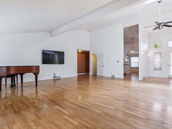 Welcome to this gorgeous home in an unbeatable location! This little slice of heaven is located steps away from Aurora Hills Golf Course. Truly spectacular open floor plan with soaring ceilings and hardwood floors! Easy, one-level living with convenient laundry room on the main floor. The eat-in kitchen features granite counters and is filled with light. The large, main level primary suite opens on to the leafy back yard. The attached, primary bathroom has a soaking tub and euro shower. In the finished basement, you'll find new carpet, family room, two large bedrooms and bathroom, along with an additional laundry room. Lush, tranquil and quiet back yard with covered patio is perfect for morning coffee or evening meals. Easy commute to Anschutz Medical Campus and I-225. View 3D tour here: https://tours.mediamaxphotography.com/public/vtour/display?idx=1&tourId=2139905&pws=1