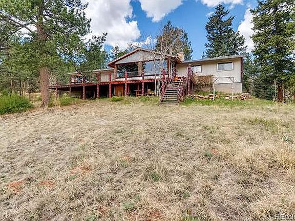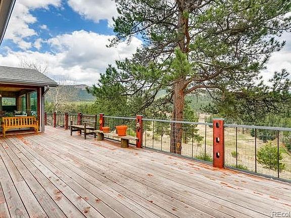 Truly a one-of-a-kind home in the Foothills, this nearly-3000 sq ft. home built in 2019 feels even bigger with vaulted ceilings, multiple living areas, and an expansive wrap-around deck that caters to the 360-degree views. The gently sloping land backs up to Staunton State Park, so this acreage will always feel like 300 acres with close-up views of the red cliffs and Elk Creek valley. Inside, youll find a fully custom home with top-of-the-line finishes and interior design wow-factor throughout. The vaulted, sky-lit kitchen is a home chefs dream, with a 10 island, 6-burner double-oven Italian gas range, and a separate butlers pantry with additional sink and dishwasher. First floor boasts a vaulted living area off the kitchen, formal dining room with 16 sliding door unit, family room with giant wood-burning fireplace, and an office/den with oversized bay windows. Upstairs youll find an enormous loft space, large bedrooms and bathrooms with ample windows of the stunning views, a spacious laundry room, and a vaulted master suite. Master bathroom has a large soaker tub and separate 6x6 shower with rain head, and the adjoining bedroom has picture windows framing the nearby cliffs and a large balcony that looks out on the breathtaking backyard view of the valley. Entire home is heated via energy-efficient in-floor heating, so your feet will stay toasty all winter long! Absolutely no expense was spared on the exterior of the home, which is outfitted with LP SmartSide siding, stone-coated steel Decra roofing, and Pella windows and doors - truly made to last. You really wont find anything like this home on the market, which happens to be nestled in a grove of aspens on a quiet road, just 5 minutes off of 285 and 35 minutes from Denver. Multiple grocery stores, restaurants, doctors offices, and coffee shops within a 10 minute drive! This house is the best of remote mountain life and luxury modern living - come and see it today as it wont last long!
