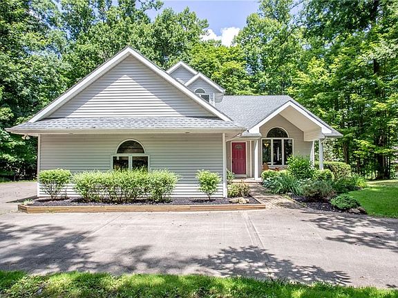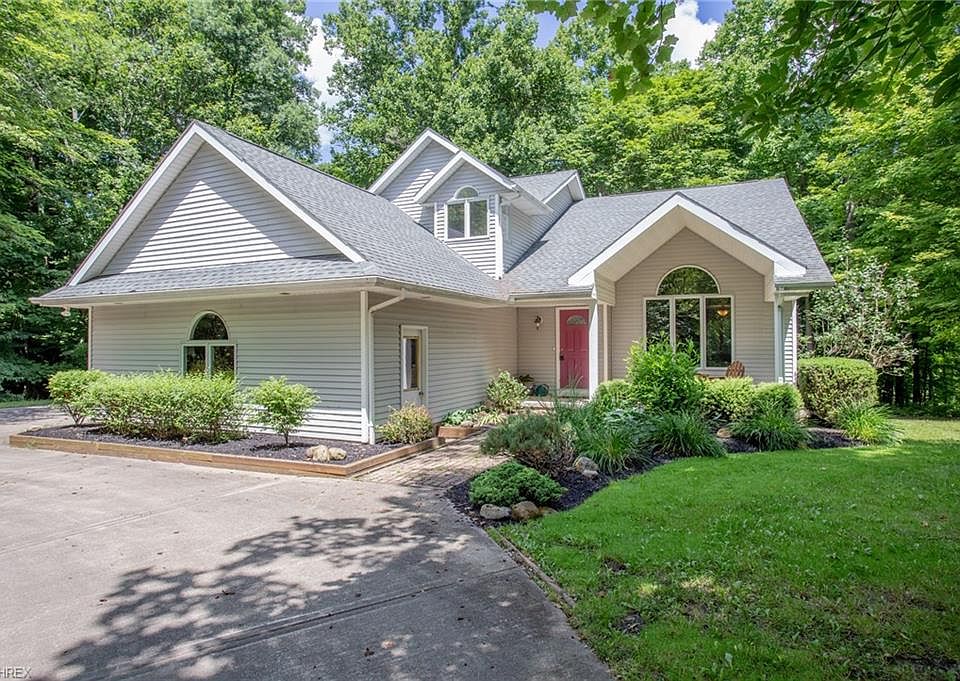 Five lush acres of greenery surround this one-of-a-kind, custom-built home that's minutes from shopping and part of the West Geauga Local Schools! This gorgeous contemporary home has it all. The first floor layout flows beautifully with every room having amazing views! The living room is a great first impression as you walk through the front door with its high ceilings and gorgeous picture window. The kitchen boasts brand new granite countertops (June 2018) with all appliances remaining. The family room is absolutely picturesque with a fireplace and dramatic windows overlooking the surrounding wooded lot. The master bedroom has vaulted ceilings, a spacious bathroom, and its own private balcony on the second floor. There are two additional bedrooms upstairs along with a lofty open space that can be used for a library, office, or even easily converted into a fourth bedroom. The unfinished walkout basement offers an additional 1,116 square feet of space! The roof is less than ten years old, the home has a complete water treatment system, the heat pump is under warranty, second floor has all brand new carpeting and fresh paint (May 2018), and Invisible Pet Fence is installed on the property.