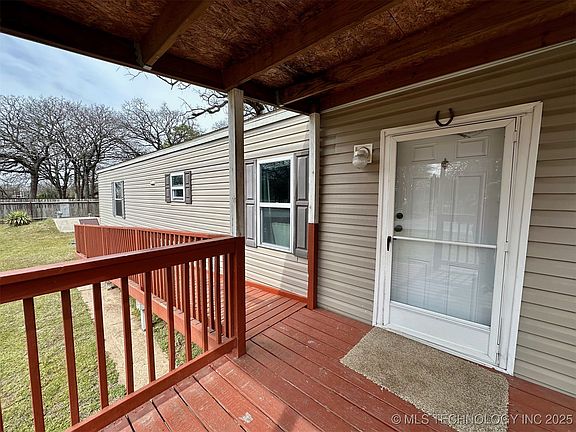 Well maintained 2 bedroom, 1 full bathroom 2015 singlewide mobile home sitting on a .62 acre lot. Home has open floor plan and is just minutes to boat ramps and Lake Texoma. Property has newer storm cellar, handicap ramp entry, partially privacy fenced yard, front and back covered patios. Extra tract included in the rear of the property giving ample room to build large shop building or add an additional residence. Come take a look at this affordable option!