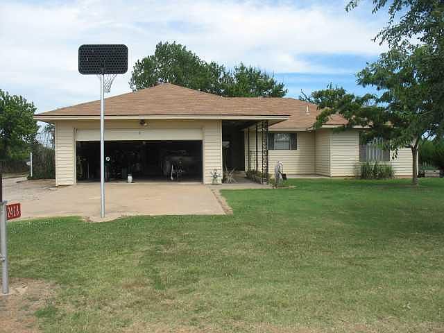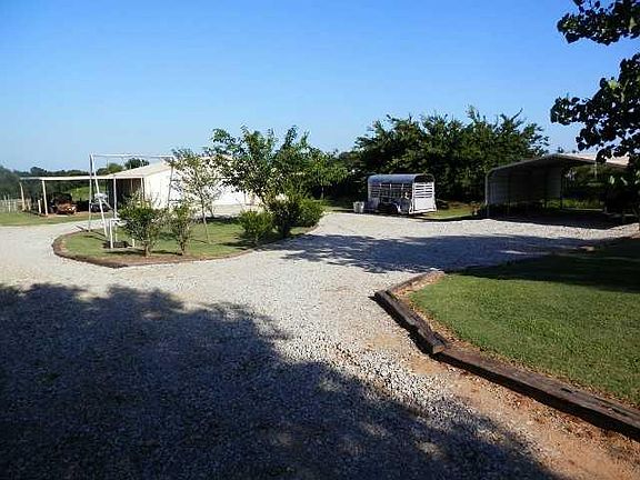 Fenced, cross fenced, 2 ponds, lots of pasture, right amount of trees,, deer stand, lean 2's w/partial loading chute, 2-car carport amazing reinforced 30' x 40' shop with carports on both sides, 40 ft of metal/bolted-in workbenches, 220 electric, Central Heat, office. 3 raised garden beds, storm shelter, manicured lawn, metal swing set and teeter totter. Home has large rooms, tons of storage, most is handicap accessible located on dead end rd