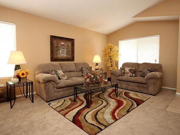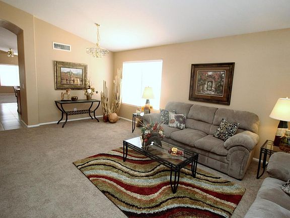 Beautiful single level home, four bedroom two full baths, living rm, family rm. The home is partially staged, furnishings do not convey. THE HOME HAS FRESH PAINT THROUGHOUT, NEW STAINLESS STEEL APPLIANCES IN A SIDE BY SIDE REFRIGERATOR WITH A BUILT IN MICROWAVE, FLAT TOP 5 BURNER SELF CLEANING RANGE, DISHWASHER, BUILT IN MICROWAVE. The kitchen has an island, extra cabinet area, tile flooring, eat-in dining area and is open to the family room. The laundry room also has a large walk in pantry. The master suite has a walk-in closet, vaulted ceilings, garden tub, separate shower and a double sink dressing vanity. The living room has a formal dining area. The home is vacant, on ARMLS lock box, no appointments needed, show any time.