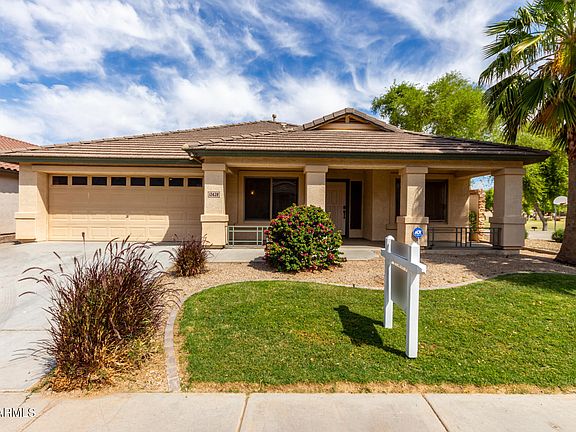 Seller offering up to 2% in concessions—perfect for a rate buy-down, closing costs, or prepaids! This move-in ready family home features fresh interior paint, brand-new carpet, and stylish upgrades throughout. Tucked away on a quiet cul-de-sac with no rear neighbors and only one next door—ideal for privacy, safety, and play. Start your mornings on the charming front porch, sipping coffee. Inside, you'll find a spacious, open layout with wood floors, upgraded stainless appliances, and modern finishes. Water heater replaced in 2021. The private, low-maintenance backyard includes new turf and a custom putting green—great for family fun and entertaining. Walkable to schools, parks, and just minutes from Wigwam Resort, trails, Tanger Outlets, and the future Mattel Adventure Park!