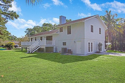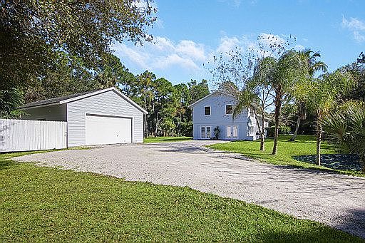 Very private custom raised ranch style home in the most peaceful and serene area of Jupiter Farms. 2214 Sq ft under roof, new granite throughout, new large poly deck, new carpet in bedrooms, refinished hardwood flooring, new insulation, central vacuum, new Hardie cement siding. Very private lot, with no chance of building behind, Bass pond, mature oak trees, 1200 Sq ft detached garage / shop.