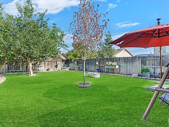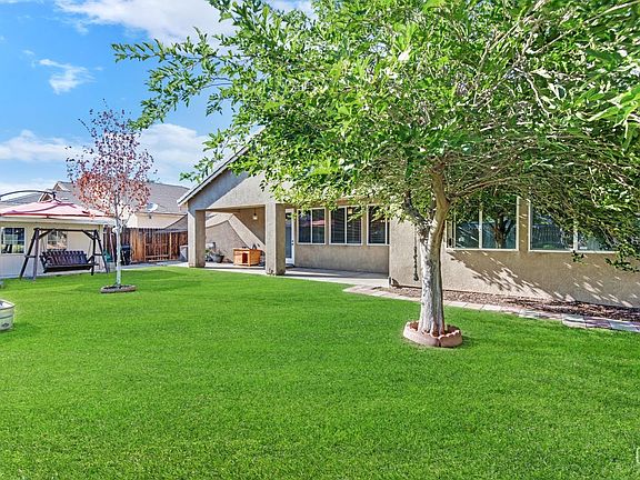 Discover this mesmerizing 4-bed, 2-bath NW Bakersfield gem with OWNED solar! As you enter, a versatile space awaits - perfect for a game room or office. The dining area features a stunning custom light fixture and ample room for gatherings. The open kitchen dazzles with granite countertops, recessed lighting, a kitchen island, and stainless steel appliances, while the living area offers natural light and an elegant gas fireplace. The bedrooms are spacious, with the master granting backyard access. Both modern bathrooms boast ample storage. Enjoy a covered patio, lush lawn, and custom shed in the backyard. Schedule your private showing today!