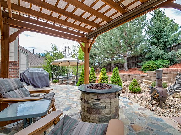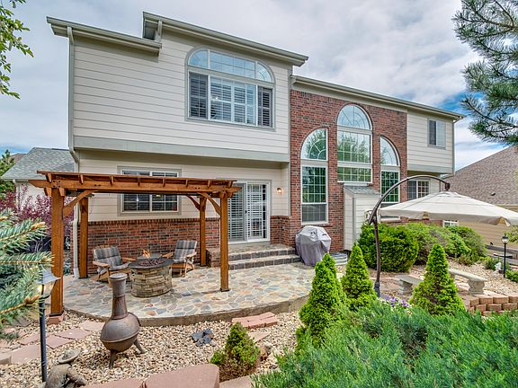 Welcome Home! This home is loaded with upgrades, designer paint throughout,all tile and hardwood on the main floor. Plantation Shutters in the family room, master bedroom and kitchen. New roof. 4 bedrooms upstairs with 2 full baths. The main floor has a study/5th bedroom with a full wall of built in bookshelves and cabinets. Fully finished basement with huge family room, workshop area, 1/2 bath with room for shower, and a huge storage room. Corner lot with Mtn and city views. Large 3 car garage with built in shelves and cabinets. Fully fenced xeriscaped back yard with lots of pines for privacy. Redwood pergola on patio provides afternoon shade for patio fun! Near Daniels Park where the buffalo and elk roam! The Safe, dining room set, and Umbrella are negotiable ask agent for details.