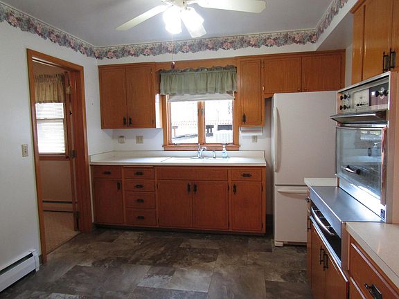 Here's the home you've been waiting for! This clean and well maintained home is move-in ready. The spacious living room has a wall of windows for natural sunlight and opens to the dining room with a built-in hutch and convenient corner desk. The eat-in kitchen has a pantry cabinet and includes a built-in oven and stove top, refrigerator and microwave. You'll love relaxing in the 4-season porch with a door to the deck overlooking the spacious back yard! There are three bedrooms on the main floor. Two of the bedrooms have a double set closets. A closet in one of the bedrooms has a stackable washer/dryer that is included. The full bath has a vanity with plenty of drawers and long countertop. Basement features a large family room, 3/4 bath, another huge storage/workshop/mechanical room and a laundry room that includes another stove, washer, dryer and freezer. Located in a great neighborhood on a quiet street, this home will go quickly! Being sold "AS IS".