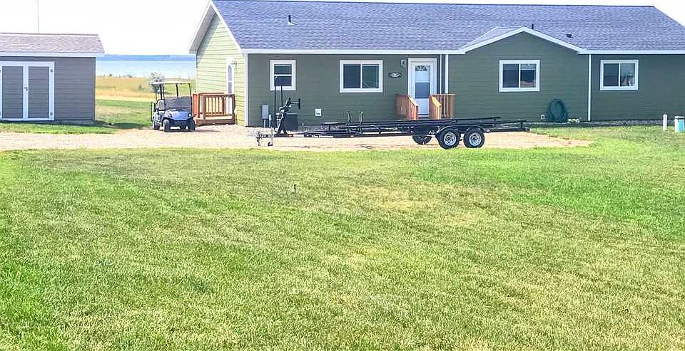 The time has come for a "lake front" property on Sakakawea Lake in Douglas Creek Bay! This is as close as it gets, you can walk off your patio into your backyard and down a path to YOUR DOCK! This is a new development with all new homes around this 1850 sf, 4 bedroom, 2 bath home on an acre lot. The video shows this amazing spot that could be yours! Already landscaped yard, perfect view, step out on your deck with a wooden pergola, there are pavers off the deck and stonework around the grill for your entertaining convenience! Inside the home, built in 2013, is laid out for easy lake life: master ensuite with a WIC and 5 piece bath ( dual sinks, separate tub/ shower, and commode), 3 more bedroom and a main full bath. Nice open kitchen, dining and family room with a view from anywhere! Mudroom off the kitchen with a utility sink.