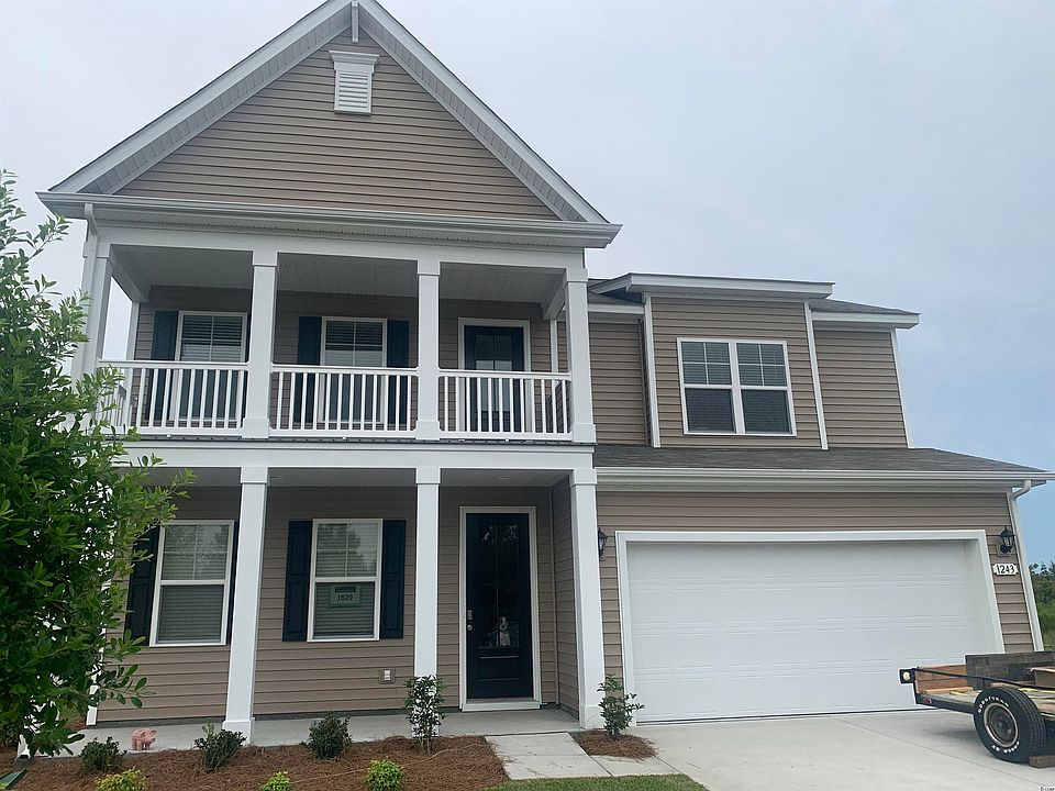 This popular plan brings functionality and style together! Incredible curb appeal is an understatement given the stacked front porches and tall entry door with glass. Once inside, wide plank laminate wood flooring creates an inviting space and numerous windows bring in fantastic natural light. Off the entry is a spacious flex room that would make a great home office or formal dining room. The large gourmet kitchen boasts 36" white painted cabinetry, granite countertops, an oversized island, stainless Whirlpool appliances, a walk-in pantry, and a gorgeous Butler's pantry. Sliding glass doors off the dining area lead to the rear screen porch! Spacious bedroom and full bathroom on the first floor is perfect for guests visiting you at the beach. Upstairs you will find the grand primary bedroom suite with a cozy sitting room, huge walk-in closet and en suite bath with large separate vanities, linen closet, and 5 ft shower! This home is located in the new natural gas community in Carolina Forest! The Parks of Carolina Forest is a picturesque setting of ponds, an amazing amenity center, and park of the majestic "Ten Oaks" with a walking trail to get to the Carolina Forest library. *Photos and virtual tour are of a similar Harbor Oak floorplan. (Home and community information, including pricing, included features, terms, availability and amenities, are subject to change prior to sale at any time without notice or obligation. Square footages are approximate. Pictures, photographs, colors, features, and sizes are for illustration purposes only and will vary from the homes as built. Equal housing opportunity builder.)