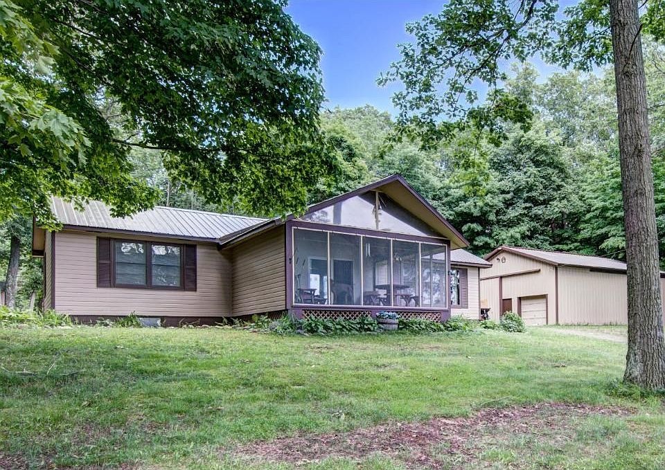 Wonderful offering on a great lake get away available today. Cabin with attached 2 car garage and steel shed has lots of room for parking and all the lake toys. New Steel Roof and Fresh Exterior Paint May 2017. Half Moon Lake is a nice clear water lake that is known for good fishing and recreational use. Pontoon w/25 hp outboard and trailer and pontoon lift will stay with appropriate offer. The home as potential in the unfinished basement to add finished sqft. Call for showing today.