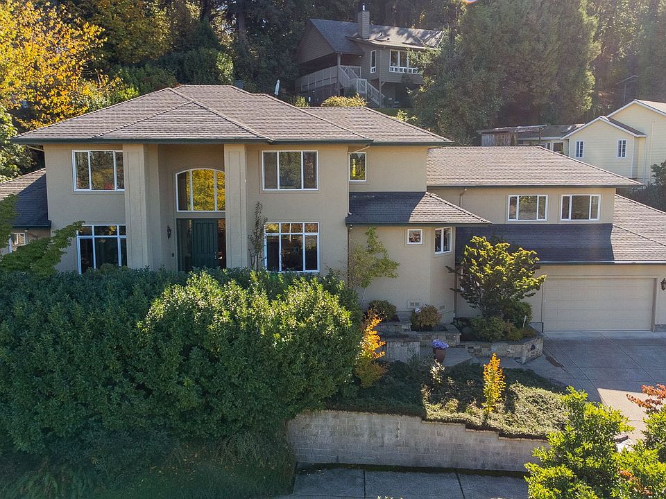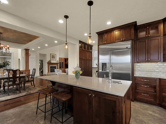 Heart of Eugene Hillside Home-Set high above the city with sweeping views yet impressively close to shopping, dining, and some of Eugene’s most sought-after schools, this refined hillside home offers an exceptional blend of convenience, privacy, and space. The main living area welcomes you with soaring ceilings, hardwood floors, a gas fireplace, and custom built-ins. The updated kitchen is an entertainer’s dream with a quartz-topped island, built-in refrigerator, dual ovens, gas cooktop with pot filler, and a warming drawer. A distinctive private bar area adds a fun and functional space for game nights or casual gatherings.Designed for comfort and flexibility, with a generous main-level wing that includes the serene bedroom suite, an adjoining office, a private gym area, and direct access to a low-maintenance courtyard. The ensuite features dual sinks, a walk-in shower, and two spacious walk-in closets.Upstairs, a large bonus room easily accommodates media, gaming, or recreational setups, and the upper bedrooms each include their own ensuite baths and walk-in closets, offering excellent individual space separation. Additional features include a well-designed mud/laundry room and a three-car garage with built-in storage.The home’s elevated placement maximizes natural light and panoramic views. Outdoor areas are intentionally low-maintenance, perfect for those who prefer relaxing or entertaining without the upkeep of a traditional lawn. With multiple levels and thoughtfully defined zones, this home beautifully supports a dynamic lifestyle where everyone can enjoy their own space.