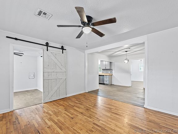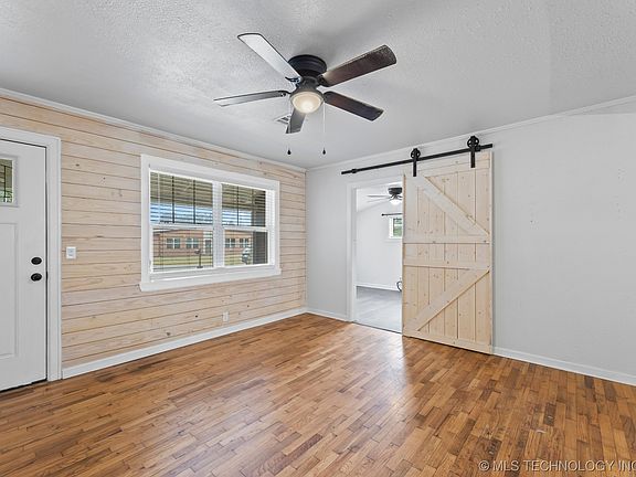 Newly, fully remodeled 3 bedrooms 2 bathrooms bungalow style home in Okmulgee. The home features vinyl, wood flooring throughout. Beautiful butcher-block countertops in the kitchen. Vinyl wood like blinds on windows throughout the home. Energy feature of an attic fan incorporated. Home is nestled in a corner lot and is only 3 blocks away from Okmulgee elementary. Covered porch in the front and a concrete patio in the back yard.