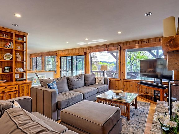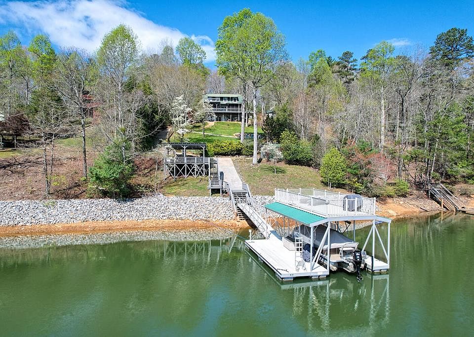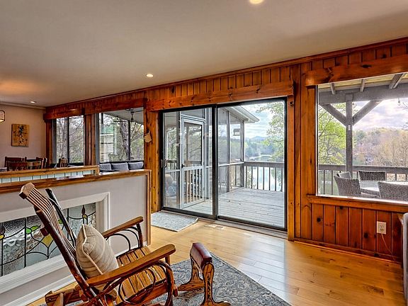 Deep water & stunning vistas at every turn. This unique lakefront home offers a beautiful blend of luxury and natural beauty. With three bedrooms, three full baths, and two half baths, it provides ample space for comfort and relaxation. The large drive-through garage—complete with a full bath—adds convenience and versatility. Step outside and you're greeted by a two-story boat dock, a fenced yard with a hot tub, and a cozy fire pit—perfect for lakeside gatherings. The fully finished basement offers added living space and the potential for a fourth bedroom, while the spacious kitchen and living room serve as ideal entertaining areas, boasting panoramic views of the lake and breathtaking mountain vistas. A detached garage includes a fourth full bathroom, and there is generous storage throughout the property. For those seeking a move-in-ready retreat, select furnishings and the boat lift are negotiable, adding even more value and convenience to this exceptional lakefront lifestyle.