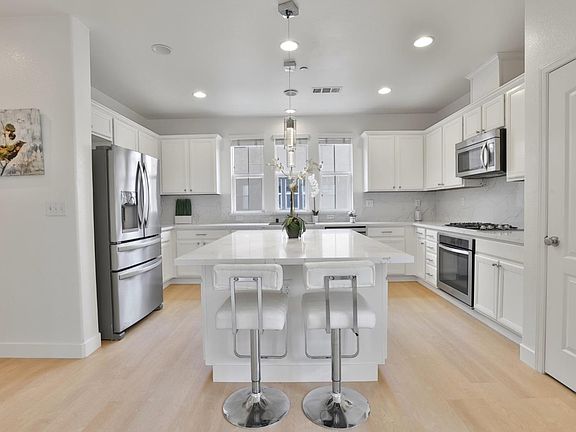 Stunning move-in ready end unit upgraded townhouse boasting the most desirable floor plan, featuring one junior suite with a full bathroom on the first level. This home offers 4 bedrooms, 3.5 baths, and 1982 sqft of living space, and dual zone A/C. Enjoy brand new quartz countertops and modern-style SPC flooring throughout. The open kitchen has an island and recessed lighting. The master bedroom features a spacious walk-in closet with a built-in organizer and closet system. Attached two-car garage and ample street parking available. Low HOA fee. This property is situated in the highly desirable neighborhood of Hayward, the Cannery Park community, offers an excellent commute to the North, South, East Bay, and Peninsula, with proximity to BART, downtown Hayward, and easy access to I-880 and the San Mateo Bridge (I-92).